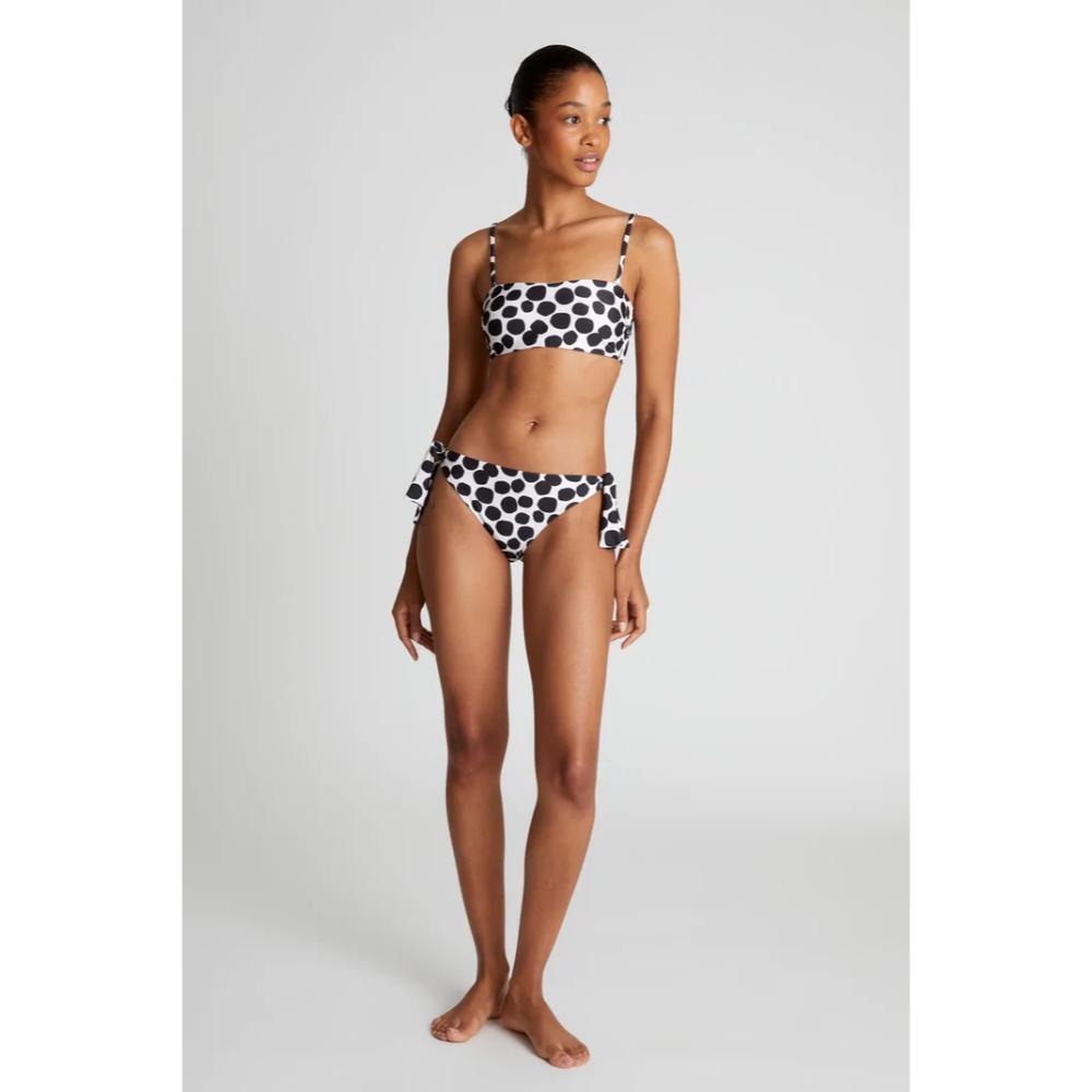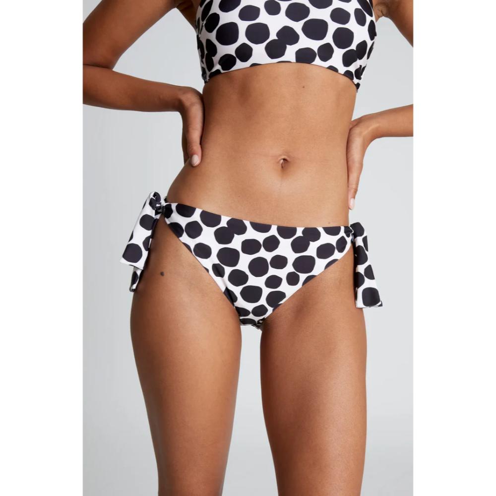 Ανακάλυψε το διαχρονικό ρετρό στυλ με αυτό το λευκο  μπικίνι της Compania Fantastica. Οι μαυρες βούλες χαρίζουν ρομαντική και vintage αισθητική, ενώ οι φιόγκοι στο κάτω μέρος προσθέτουν παιχνιδιάρικη και θηλυκή διάθεση.